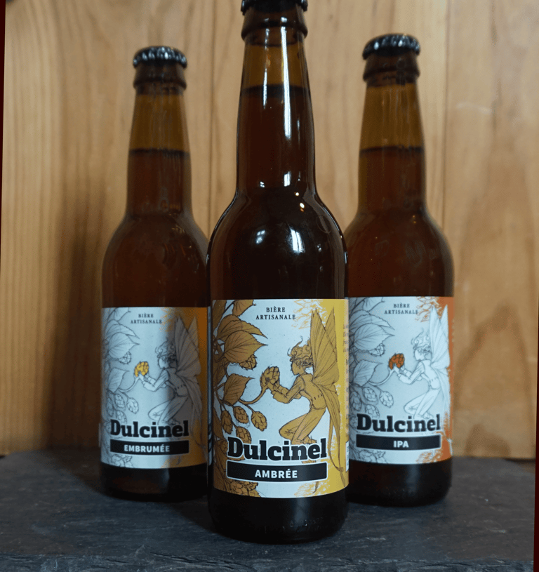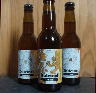 La Brasserie Dulcinel propose une gamme de bières artisanales, disponibles en bouteilles de 75 cl ou en fût, tout en respectant l'écologie et la provenance des matières premières.